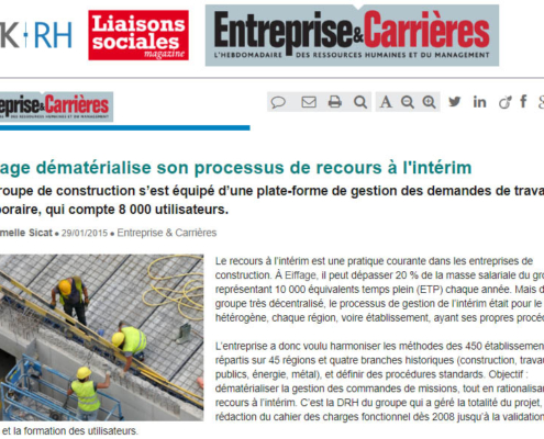 Entreprise et Carrières – EIFFAGE dématérialise son processus de recours à l’intérim